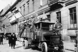 Finnish anti-communism persisted during the 1920s. White Guard militias formed during the civil war in 1918 were retained as an armed 100,000 strong 'civil guard'. The Finnish used these militias as a permanent anti-communist auxiliary to the military. In Finland, anti-communism had an official character and was prolific in institutions.[190] After the Finnish increased its support and received nearly 14 per cent of the vote in the 1929 elections, civil guards and local farmers violently suppressed up a communist party meeting in Lapua. This place gave its name to a direct-action movement, the sole purpose of which was to fight against communism.[190]