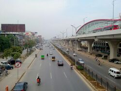 The Rawalpindi-Islamabad Metrobus is a 48.1 km (29.9 mi) bus rapid transit system operating in the Islamabad-Rawalpindi metropolitan area. The Metrobus network's first phase was opened on 4 June 2015, and stretches 22.5 kilometres between Pak Secretariat, in Islamabad, and Saddar in Rawalpindi. The second stage stretches 25.6 kilometres between the Peshawar Morr Interchange and New Islamabad International Airport and was inaugurated on 18 April 2022.[77][78] The system uses e-ticketing and an Intelligent Transportation System and is managed by the Punjab Mass Transit Authority.