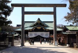 In Shinto, kannagara ("way of the kami") is the law of the natural order,[94] with wa ("benign harmony") being inherent in all things.[99] Disrupting wa is deemed bad, contributing to it is thought good;[100] as such, subordination of the individual to the larger social unit has long been a characteristic of the religion.[101] Throughout Japanese history, the notion of saisei-itchi, or the union of religious authority and political authority, has long been prominent.[102] In the modern world, Shinto has tended toward conservatism,[103] as well as nationalism,({{{1}}}, {{{2}}}) an association that results in various Japanese civil liberties groups and neighboring countries regarding Shinto suspiciously.[104] Particularly controversial has been the Yasukuni Shrine in Tokyo, devoted to Japan's war dead. In 1979 it enshrined 14 men who had been declared Class-A defendants at the 1946 Tokyo War Crimes Trials, generating domestic and international condemnation, particularly from China and Korea.({{{1}}}, {{{2}}})