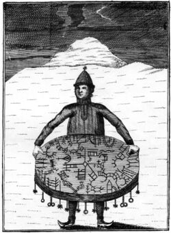 In the Sami shamanistic form of worship drumming and traditional chanting (joiking) is of singular importance.[2] Some of joiks are sung on shamanistic rites;[4] this memory is conserved also in a folklore text (a shaman story).[5][4]