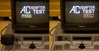 The NES Test Station's front has a Game Pak slot and connectors for testing various components (AC adapter, RF switch, Audio/Video cable, NES Control Deck, accessories and games), with a centrally-located selector knob to choose which component to test. The unit itself weighs approximately 11.7 pounds without a TV. It connects to a television via a combined A/V and RF Switch cable. By actuating the green button, a user can toggle between an A/V Cable or RF Switch connection. The television it is connected to (typically 11" to 14") is meant to be placed atop it.[136]