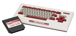 By 1986, the cost and size limitations of ROM chips used in the Famicom's ROM cartridges were apparent, with no new advancements present to address them.[69][126] With this in mind, Nintendo looked at the personal computer (PC) market, where the floppy disk was gaining wide adoption as a computer data storage medium.[127] Partnering with Mitsumi to develop a floppy disk add-on for the Famicom based on the latter's Quick Disk format,[128] Nintendo officially released it as the Family Computer Disk System in Japan on February 21, 1986, at a retail price of ¥15,000.[129][130]