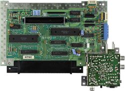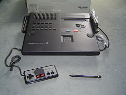 Sharp Corporation produced three licensed variants of the Famicom in Japan, all of which prominently display the shortened moniker rather than the official name, Family Computer.[lower-alpha 5] One variant was a television set with an integrated Famicom; originally released in 1983 as the My Computer TV in 14-inch (36 cm) and 19-inch (48 cm) models,[76] it was later released in the United States in 1989 as a 19-inch model named the Video Game Television.[77][78] Another variant is the Twin Famicom console released in 1986 to combine a Famicom with a Famicom Disk System.[79] Sharp then produced the Famicom Titler in 1989. Intended for video capture and production, it features internal RGB video generation and video output via S-Video, plus inputs for adding subtitles and voice-overs.[80]