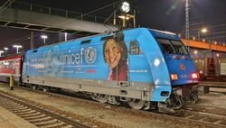 A commercial on the Berlin U-Bahn that reads: "Did you know... that Wikipedia has more sister projects?", followed by an URL to Germany's Wikimedia chapter