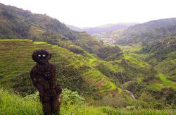 Archaeological traces of taro exploitation have been recovered from numerous sites pre-dating the Austronesian expansion, though whether these were cultivated or wild types can not be ascertained. They include the Niah Caves of Borneo, dating to <40,000 BP;[72] Ille Cave of Palawan, dated to at least c. 11,000 BP;[72][73] Kuk Swamp of New Guinea, dated to 10,200 to 9,910 cal BP;[74][75] and Kilu Cave in the Solomon Islands dated to around c. 28,000 to 20,000 BP.[76] In the case of Kuk Swamp, there is evidence of formalized agriculture emerging by about c. 10,000 BP, with evidence of cultivated plots, though which plant was cultivated remains unknown.[77]