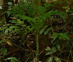 The intoxicating yam (Dioscorea hispida), is native to tropical Asia and New Guinea. It is only cultivated minimally in parts of Java. Elsewhere it is harvested from the wild. Like D. bulbifera it has toxic tubers that need to be prepared correctly before they can be eaten, and thus were only suitable for famine food.[154] However, it is one of the Dioscorea species identified from the Niah Caves archaeological site dating to <40,000 BP.[72][155] Its names can be reconstructed to Proto-Western-Malayo-Polynesian *gaduŋ. Its modern cognates in most Western Malayo-Polynesian languages is gadung or gadong (also ubi gadung or ubi gadong). The names are also applied to the similarly toxic introduced cassava.[16]