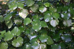 Kawakawa (Piper excelsum) is a small tree or shrub endemic to New Zealand and nearby Norfolk Island and Lord Howe Island. It was exploited by Austronesian settlers based on previous knowledge of the kava, as the latter could not survive in the colder climates of Aotearoa. The Māori name for the plant, kawakawa, is derived from the same etymon as kava, but reduplicated. It is a sacred tree among the Māori people. It is seen as a symbol of death, corresponding to the rangiora (Brachyglottis repanda) which is the symbol of life. Boughs of kawakawa are often used in purification rituals.[189]