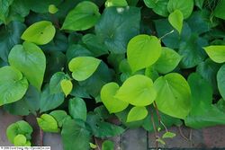 The air yam (Dioscorea bulbifera), also known as the bitter yam, is one of the lesser cultivated species of yam. It is usually only eaten as famine food in Island Southeast Asia, Melanesia, and Polynesia, because of the toxicity of some wild or feral plants when not cooked correctly. However it is one of only three yams that were carried by Austronesians into Remote Oceania, the others being D. alata and D. nummularia. The part of the plant harvested are the aerial tubers, as it does not usually produce large underground tubers.[22][143]