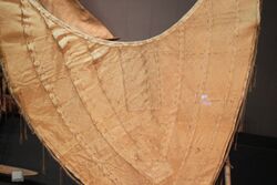Barkcloth was mainly used for clothing among ancient Austronesians and is traditionally made using characteristic stone or wooden beaters which are among the most common artifacts found in Austronesian archaeological sites. Numerous archaeological remains of barkcloth beaters in southern China has been regarded as evidence that the pre-Taiwan Austronesian homelands were located in the region prior to the southward expansion of the Han Dynasty, particularly around the Pearl River Delta. The oldest such remains is from the Dingmo Site in Guangxi, dated to around 7,900 BP.[45] Barkcloth remained an important source of clothing fabrics in pre-colonial Melanesia, Polynesia, and parts of Indonesia. However, it has been mostly replaced by woven fiber clothing in most of Island Southeast Asia and Micronesia.[17]