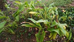 Gingers (family Zingiberaceae) were cultivated extensively by Austronesians for food, medicine, weaving materials, and for religious purposes. The most commonly cultivated species include the lengkuas (Alpinia galanga), fingerroot (Boesenbergia rotunda), turmeric (Curcuma longa), torch ginger (Etlingera elatior), and ginger (Zingiber officinale). Other species were also exploited at a smaller scale or harvested from the wild, including dwarf cardamom (Alpinia nutans), panasa cardamom (Amomum acre), white turmeric (Curcuma zedoaria), jiddo (Hornstedtia scottiana), white ginger lily (Hedychium coronarium), and bitter ginger (Zingiber zerumbet).[184][16][209]