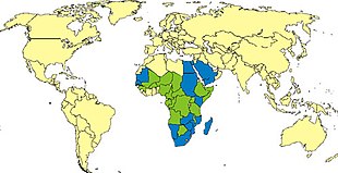 RVF outbreaks occur across sub-Saharan Africa, with outbreaks occurring elsewhere infrequently. In Egypt in 1977–78, an estimated 200,000 people were infected and there were at least 594 deaths.[30] [31] In Kenya in 1998, the virus killed more than 400 people. In September 2000, an outbreak was confirmed in Saudi Arabia and Yemen. On 19 October 2011, a case of Rift Valley fever contracted in Zimbabwe was reported in a Caucasian female traveler who returned to France after a 26-day stay in Marondera, Mashonaland East Province during July and August, 2011[32] but later classified as "not confirmed."[33]