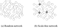 Scale-free networks: A scale-free network is a network whose degree distribution follows a power law, at least asymptotically. In network theory a scale-free ideal network is a random network with a degree distribution that unravels the size distribution of social groups.[43] Specific characteristics of scale-free networks vary with the theories and analytical tools used to create them, however, in general, scale-free networks have some common characteristics. One notable characteristic in a scale-free network is the relative commonness of vertices with a degree that greatly exceeds the average. The highest-degree nodes are often called "hubs", and may serve specific purposes in their networks, although this depends greatly on the social context. Another general characteristic of scale-free networks is the clustering coefficient distribution, which decreases as the node degree increases. This distribution also follows a power law.[44] The Barabási model of network evolution shown above is an example of a scale-free network.