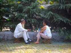 A Mandaean priest refers to an ordained religious leader in Mandaeism. In Mandaean scriptures, priests are referred to as Naṣuraiia (Naṣoraeans).[37] All priests must undergo lengthy ordination ceremonies, beginning with tarmida initiation.[38] Mandaean religious leaders and copyists of religious texts hold the title Rabbi or in Arabic 'Sheikh'.[39][40]