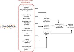Tocilizumab has been included in treatment guidelines by China's National Health Commission after a small study was completed.[422][423] It is undergoing a Phase II non-randomised trial at the national level in Italy after showing positive results in people with severe disease.[424][425] Combined with a serum ferritin blood test to identify a cytokine storm (also called cytokine storm syndrome, not to be confused with cytokine release syndrome), it is meant to counter such developments, which are thought to be the cause of death in some affected people.[426] The interleukin-6 receptor (IL-6R) antagonist was approved by the FDA to undergo a Phase III clinical trial assessing its effectiveness on COVID‑19 based on retrospective case studies for the treatment of steroid-refractory cytokine release syndrome induced by a different cause, CAR T cell therapy, in 2017.[427] There is no randomised, controlled evidence that tocilizumab is an efficacious treatment for CRS. Prophylactic tocilizumab has been shown to increase serum IL-6 levels by saturating the IL-6R, driving IL-6 across the blood–brain barrier, and exacerbating neurotoxicity while having no effect on the incidence of CRS.[428]