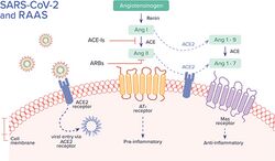 Human angiotensin converting enzyme 2 (hACE2) is the host factor that SARS-CoV-2 virus targets causing COVID‑19. Theoretically, the usage of angiotensin receptor blockers (ARB) and ACE inhibitors upregulating ACE2 expression might increase morbidity with COVID‑19, though animal data suggest some potential protective effect of ARB; however no clinical studies have proven susceptibility or outcomes. Until further data is available, guidelines and recommendations for hypertensive patients remain.[118]