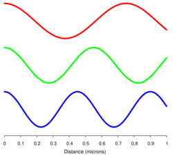 Electric and magnetic fields obey the properties of superposition. Thus, a field due to any particular particle or time-varying electric or magnetic field contributes to the fields present in the same space due to other causes. Further, as they are vector fields, all magnetic and electric field vectors add together according to vector addition.[13] For example, in optics two or more coherent light waves may interact and by constructive or destructive interference yield a resultant irradiance deviating from the sum of the component irradiances of the individual light waves.[14]