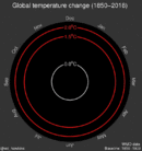 In particular, climate change art has been used both to make scientific data more accessible to non-scientists and to express people's fears.[13] Some research indicates that climate change art is not particularly effective in changing peoples views, though art with a "hopeful" message gives people ideas for change.[13] Projecting a positive message, climate scientist Ed Hawkins said that "infiltrating popular culture is a means of triggering a change of attitude that will lead to mass action".[14]