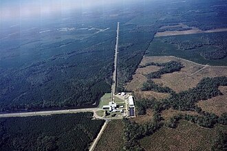 Aerial view of the Livingston gravitational-wave detector site, Louisiana.