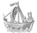 The technique of clinker developed in the Nordic shipbuilding tradition as distinct from the Mediterranean mortise and tenon planking technique which was introduced to the provinces of the north in the wake of Roman expansion. Although overlapping seems to already appear in the 4th-century BC Hjortspring boats,[6] the oldest evidence for a clinker-built vessel, dendrochronologically dated to 190 AD, are boat fragments which were found in excavations at the site of the Nydam Boat.[7] The Nydam Boat itself, built c. 320 AD, is the oldest preserved clinker-built boat.[8] Clinker-built ships were a trademark of Northern European navigation throughout the Middle Ages, particularly of the longships of the Viking raiders and traders, as well as the trading cogs of the Hanseatic League. Clinker-built vessels were constructed as far South as the Basque country.[lower-alpha 1][9]