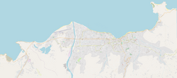 The precise location of the city is around 8°35′S, 125°36′E.[32] The city lies mostly within the larger Dili Municipality, whose total area is 367 square kilometres (142 sq mi).[35]:2–5 Atauro Island, north of Dili, was formally part of the municipality before becoming a separate municipality on 1 January 2022. The bordering municipalities to Dili are Aileu, Liquiçá, and Manatuto.[10] The municipality contains 31 sucos, divided into 241 aldeias.[16]:I-1[36] The urban area of the city of Dili extends through four of the Dili Municipality's Administrative Posts, Cristo Rei, Dom Aleixo, Nain Feto, and Vera Cruz, which together contain 25 sucos, as well as west into the Tibar suco of the Bazartete Administrative Post in the Liquiçá Municipality. The combined area of these 25 sucos is 17,862 ha.[16]:I-2, 1–3, I-4 Much of this area is however considered too steep for habitation,[16]:I-4 with only perhaps 37%, or 6,698 ha, flat enough for development.[16]:I-5 As of 2014, only 25.5% of the total area was developed.[16]:I-6