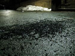 - Broken pieces of ceramic, often from a spark plug insulator, used for throwing at car door windows so they shatter quietly.