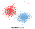 Returning to the general stochastic block model, a model is called strongly assortative if [math]\displaystyle{ P_{ii} \gt P_{jk} }[/math] whenever [math]\displaystyle{ j \neq k }[/math]: all diagonal entries dominate all off-diagonal entries. A model is called weakly assortative if [math]\displaystyle{ P_{ii} \gt P_{ij} }[/math] whenever [math]\displaystyle{ i \neq j }[/math]: each diagonal entry is only required to dominate the rest of its own row and column.[2] Disassortative forms of this terminology exist, by reversing all inequalities. For some algorithms, recovery might be easier for block models with assortative or disassortative conditions of this form.[2]