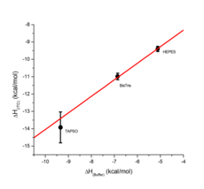 [math]\displaystyle{ \Delta H_{ITC} = (n_{H+}) \Delta H_{BH} + [ -\Delta H_{MB} - (n_{H+}) \Delta H_{LH} + \Delta H_{ML} ] }[/math]
