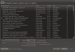 Most of these server browsers allow players to filter the results they provide.[9] Common filter criteria include server name, player count, game mode, and latency.