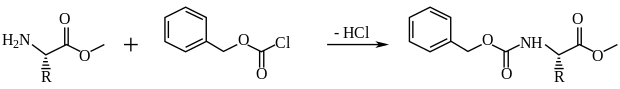 The (Z) group is another carbamate-type amine protecting group, discovered by Leonidas Zervas in the early 1930s and usually added via reaction with benzyl chloroformate.[30]