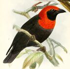 Basic to the second group is a clade consisting of both species so far included in Ploceus that live on Madagascar, P. nelicourvi and P. sakalava, and these are morphologically very distinct from the remaining species. These two species could in future be assigned to the genus Nelicurvius that was erected by Charles Lucien Bonaparte in 1850, but which was merged with Ploceus later on. This second group further contains the genera Malimbus and Anaplectes, and all remaining Ploceus species. As Malimbus is the earlier name, erected by Vieillot et al. in 1805, the remaining species of Ploceus, as well as Anaplectes rubiceps, could in future be assigned to Malimbus.[6] These changes are largely corroborated by morphological revisions.[7][8] Provided that the other genera that have not been proposed to be merged into an extended "Malimbus" are monophyletic, the following (incomplete) tree expresses current insights.