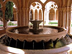 Many ancient churches were built with a large fountain in the courtyard. It was the tradition for Christians to wash before entering the church for worship.[18] This usage is also legislated in the Rule of St. Benedict, as a result of which, many medieval monasteries were built with communal lavers for the monks or nuns to wash up before the Daily Office. Catholic religious orders of the Augustinians' and Benedictines' rules contained ritual purification,[19] and inspired by Benedict of Nursia encouragement for the practice of therapeutic bathing; Benedictine monks played a role in the development and promotion of spas.[20]