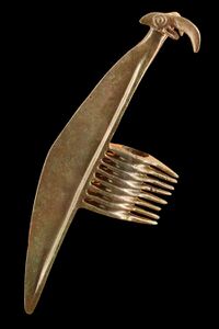 Amlash, now a county in Gilan province, was a small village in southeastern Gilan in 1959. The name originates from the nearby Alborz valleys where archaeological artifacts were discovered during excavations. The artifacts range in date from the late second millennium BC through the Partho-Sasanian period, but most of the objects are dated to the 9th-8th centuries BC. Dating and meaning of the known objects (bronze weapons and animal figurines, human statuettes of terra cotta and bronze, pottery animal effigy vases, and burnished black, gray, or orange pottery vessels) is complicated by insufficient archaeological contexts.[1]