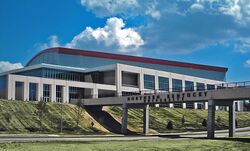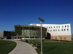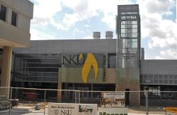 Northern Kentucky University's main campus in Highland Heights, Kentucky is situated on 400 acres (1.6 km2) of rolling countryside along U.S. Route 27, just off of Interstate 275 and Interstate 471, seven miles (11 km) southeast of Cincinnati, Ohio. The campus was built beginning in the early 1970s, and the first building, Nunn Hall, opened in 1972.[10] Although most of the university's students commute daily to the campus, approximately 2,000 students live on campus. In recent years, the university has been in the process of expanding its campus and facilities. The $60 million Truist Arena is a 9,400-seat arena completed in 2008. It serves as the primary venue for athletics on campus, and also as a venue for entertainment, such as live bands and concerts. The arena was originally known as The Bank of Kentucky Center, named after The Bank of Kentucky, which made an endowment of $5 million toward construction. The name was changed in 2015 when that bank was purchased by BB&T, and again in 2022 after BB&T merged with SunTrust to create Truist Financial. Additionally, a new $37 million, 144,000-square-foot (13,400 m2) Student Union building, which opened to students in August 2008, largely replaces an old university center and is designed to accommodate student needs on campus. The building includes cafeterias, stores, a game room, offices for student life programs, and other amenities for students. Other recent projects included the construction of a new parking garage to accommodate the arena and a European-style roundabout for traffic control and flow management. The most recent university master plan envisions a massive expansion of the campus by the year 2020, including multiple new academic buildings, housing developments, campus quad areas, athletic fields, parking lots and connector roads.[13] The Landrum Academic Center houses an Anthropology Museum. The university campus is also the first educational institute in the world to have a laser-projection planetarium, as part of the Dorothy Westerman Hermann Natural Science Center. The Covington campus, located in Covington, Kentucky, closed at the end of 2008. It mainly served nontraditional and adult students and also hosted the Program for Adult-Centered Education and Emergency Medical Technology programs.[14] Northern Kentucky University's Grant County Center, located in Williamstown, Kentucky, is a partnership between the Grant County Foundation for Higher Education and Northern Kentucky University. It houses Northern Kentucky educational programs and the Williamstown Innovation Center.[citation needed]