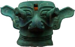 Wearing ritual masks is a recent hypothesis about shi. Paper suggested the possibility that Shang and Zhou shi wore bronze masks "symbolizing the spirit of the dead to whom the sacrifices were offered".[50] Liu believes the phantasmagoric bronze masks discovered at Sanxingdui, dating from c. 12th–11th centuries BCE, might have been ritually worn by shi 尸.