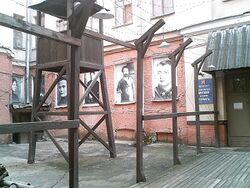 Stalin's regime forcibly purged society of what it saw as threats to itself and its brand of communism (so-called "enemies of the people"), which included political dissidents, non-Soviet nationalists, the bourgeoisie, better-off peasants ("kulaks"),[4] and those of the working class who demonstrated "counter-revolutionary" sympathies.[5] This resulted in mass repression of such people and their families, including mass arrests, show trials, executions, and imprisonment in forced labor camps known as gulags.[6] The most notorious examples were the Great Purge and the Dekulakization campaign. Stalinism was also marked by militant atheism, mass anti-religious persecution,[7][8] and ethnic cleansing through forced deportations.[9] Some historians, such as Robert Service, have blamed Stalinist policies, particularly collectivization, for causing famines such as the Holodomor.[7] Other historians and scholars disagree on Stalinism's role.[10]