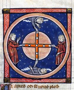 The earth on all its sides is the same; all people on the earth stand upright, and all heavy things fall down to the earth by a law of nature, for it is the nature of the earth to attract and to keep things, as it is the nature of water to flow ... If a thing wants to go deeper down than the earth, let it try. The earth is the only low thing, and seeds always return to it, in whatever direction you may throw them away, and never rise upwards from the earth.[34][35][lower-alpha 2]