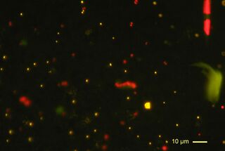 Marine microorganisms are defined by their habitat as microorganisms living in a marine environment, that is, in the saltwater of a sea or ocean or the brackish water of a coastal estuary. A microorganism (or microbe) is any microscopic living organism or virus, that is too small to see with the unaided human eye without magnification. Microorganisms are very diverse. They can be single-celled[1] or multicellular and include bacteria, archaea, viruses and most protozoa, as well as some fungi, algae, and animals, such as rotifers and copepods. Many macroscopic animals and plants have microscopic juvenile stages. Some microbiologists also classify viruses as microorganisms, but others consider these as non-living.[2][3]