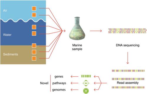 ↑Kodzius, R.; Gojobori, T. (2015). "Marine metagenomics as a source for bioprospecting". Marine Genomics24: 21–30. doi:10.1016/j.margen.2015.07.001. PMID 26204808. Bibcode: 2015MarGn..24...21K. 50px Modified text was copied from this source, which is available under a Creative Commons Attribution 4.0 International License.