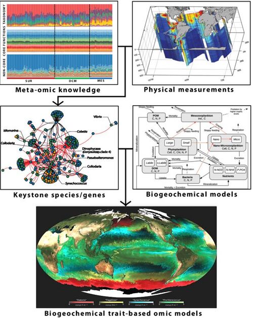 ↑Mock, T., Daines, S.J., Geider, R., Collins, S., Metodiev, M., Millar, A.J., Moulton, V. and Lenton, T.M. (2016) "Bridging the gap between omics and earth system science to better understand how environmental change impacts marine microbes". Global Change Biology, 22(1): 61–75. doi:10.1111/gcb.12983. 50px Modified text was copied from this source, which is available under a Creative Commons Attribution 4.0 International License.
