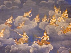 According to Buddhist cosmology the universe is impermanent and beings transmigrate through a number of existential "planes" in which this human world is only one "realm" or "path".[73] These are traditionally envisioned as a vertical continuum with the heavens existing above the human realm, and the realms of the animals, hungry ghosts and hell beings existing beneath it. According to Jan Chozen Bays in her book, Jizo: Guardian of Children, Travelers, and Other Voyagers, the realm of the asura is a later refinement of the heavenly realm and was inserted between the human realm and the heavens. One important Buddhist heaven is the Trāyastriṃśa, which resembles Olympus of Greek mythology.