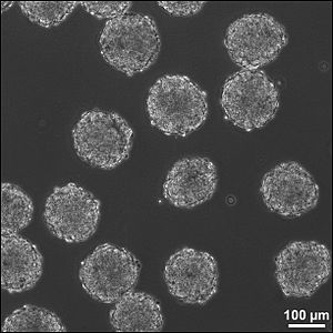 Two models for brain tissue development are cerebral organoids and corticopoiesis. These models provide an "in vitro" model for normal brain development,[6] but they can be manipulated to represent neural defects. Therefore, the mechanisms behind healthy and malfunctioning development can be studied by researchers using these models.[6] These tissues can be made with either mouse embryonic stem cells (ESC)s or human ESCs. Mouse ESCs are cultured in a protein called Sonic Hedgehog inhibitor to promote the development of dorsal forebrain and study cortical fate.[5] This method has been shown to produce axonal layers that mimic a broad range of cortical layers.[12] Human ESC-derived tissues use pluripotent stem cells to form tissues on scaffold, forming human EBs. These human ESC-derived tissues are formed by culturing human pluripotent EBs in a spinning bioreactor.[6]