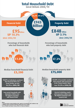 Household debt is the combined debt of all people in a household, including consumer debt and mortgage loans. A significant rise in the level of this debt coincides historically with many severe economic crises and was a cause of the U.S. and subsequent European economic crises of 2007–2012. Several economists have argued that lowering this debt is essential to economic recovery in the U.S. and selected Eurozone countries.[1][2][3]