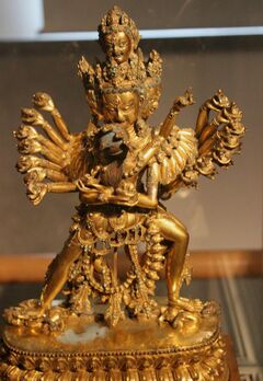 Tibetan and Nepalese Buddhist deities Nairatmya and Hevajra in an embrace. Nairatmya is the goddess of emptiness, and of Anatta (non-self, non-soul, selflessness) realization.[115][116]