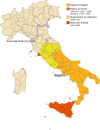 ![]() The territory of the Kingdom of Naples in 1454 | |||||||||||||||||||||||||