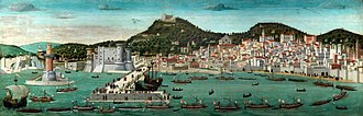 The kingdom suffered a heavy burden from the Franco-Spanish War (1635–1659). From 1631 to 1636 alone, Naples sent 53,500 soldiers and 3.5 million scudi to support the Spanish king.[10] This was actually more than was raised in the same time by Castile, which had a population twice the size. Naples provided and paid for 10,000 troops and 1,000 horses annually from 1630 to 1643, on top of a 1 million ducat annual subsidy for the war effort and more funds and soldiers for the kingdom's garrisons and navy.[11] The kingdom was increasingly forced to revert to borrowing to finance the war as it went on, which it could do due to its good credit. From 1612 to 1646, Neapolitan taxes tripled and the public debt quintupled, and 57 percent of the kingdom's revenue was devoted to interest payments. Spain's wars crushed the Neapolitan economy. Furthermore, 90 percent of taxes were collected by state creditors, meaning the state paid an effective interest rate of 70 percent annually on the money it borrowed to fight the war. The kingdom started selling state assets to anyone willing to buy them, which usually ended up being barons; these assets included prisons, forests, buildings, and even royal fortresses, as well as titles.[12]