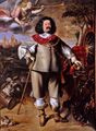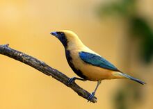 The first recorded use of the word buff to describe a colour was in The London Gazette of 1686, describing a uniform to be "...a Red Coat with a Buff-colour'd lining".[12] It referred to the colour of undyed buffalo leather, such as soldiers wore as some protection:[13] an eyewitness to the death in the Battle of Edgehill (1642) of Sir Edmund Verney noted "he would neither put on arms [armour] or buff coat the day of the battle".[14][15] Such buff leather was suitable for buffing or serving as a buffer between polished objects. It is not clear which bovine "buffalo" referred to, but it may not have been any of the animals called "buffalo" today.[16]
