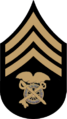 US chevron - quartermaster sergeant insignia (1902-1909) buff on black with blue detail.