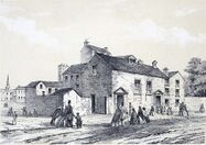Wesley's Oxford friend, the evangelist George Whitefield, was also excluded from the churches of Bristol upon his return from America. When Wesley reached Bristol, the city was booming with new industrial and commercial development.[44] Because of this, there were social uproars with riots and religious troubles.[44] About a fifth of the population were Dissenters, while many of the Anglicans possessed a religious enthusiasm that made them receptive to Wesley's message and approach.[45] Going to the neighbouring village of Kingswood, in February 1739, Whitefield preached in the open air to a company of miners.[46] Later he preached in Whitefield's Tabernacle. Wesley hesitated to accept Whitefield's call to copy this bold step. Overcoming his scruples, he preached the first time at Whitefield's invitation a sermon in the open air, at a brickyard, near St Philip's Marsh, on 2 April 1739.[47] Wesley wrote,