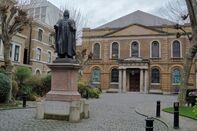 As his societies needed houses to worship in, Wesley began to provide chapels, first in Bristol at the New Room,[58] then in London (first The Foundery and then Wesley's Chapel) and elsewhere. The Foundery was an early chapel used by Wesley.[59] The location of the Foundery is shown on an 18th-century map, where it rests between Tabernacle Street and Worship Street in the Moorfields area of London. When the Wesleys spotted the building atop Windmill Hill, north of Finsbury Fields, the structure which previously cast brass guns and mortars for the Royal Ordnance had been sitting vacant for 23 years; it had been abandoned because of an explosion on 10 May 1716.[60]