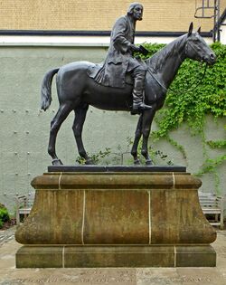 Wesley travelled widely, generally on horseback, preaching two or three times each day. Stephen Tomkins writes that "[Wesley] rode 250,000 miles, gave away 30,000 pounds, ... and preached more than 40,000 sermons".[132] He formed societies, opened chapels, examined and commissioned preachers, administered aid charities, prescribed for the sick, helped to pioneer the use of electric shock for the treatment of illness,[133] and superintended orphanages and schools (including Kingswood School).[134]
